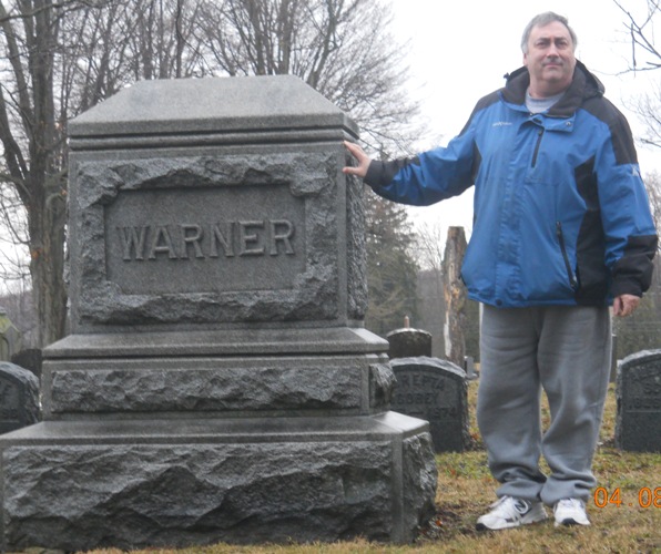 He is also noted for creating many trick plays that pushed the rules of the game at the time. One such play has become known as the hidden ball play. It was used just one time, in a game against Harvard in 1903. As Harvard kicked off to begin the second half, the Carlisle players all gathered around the return man. He then slipped the ball into the back of one of the linemen’s jersey, in a specially made pocket, and everyone took off in various directions. The Harvard players did not know who actually had the ball until it was too late. The Carlisle player had crossed the goal line. While there was technically no rule prohibiting such a play, Warner took a great deal of criticism for the play and it was never used again. Rules were later put in place so that such a deception was not allowed on the field. Warner finished his college coaching career at Temple from 1933-1938. He was inducted into the College Football Hall of Fame in 1951. According to his Hall of Fame profile, Warner coached for 44 seasons (1895-1938) and posted an overall record of 319-106-32. Visiting His Grave Warner was born on April 5, 1871 and raised in Springville, New York, which is located in the western part of the state near Lake Erie. He died on September 7, 1954 and is buried in the Maplewood Cemetery which is located on West Main Street in Springville in a family plot along with his parents and siblings. Warner is buried in Section 7 of the cemetery. Once you enter the cemetery, drive straight back until the road forks. You will see a large stone marker on the right with the name Warner. The Warner family members are buried in a row in front of the family marker. On the back side of the stone is another family name, Scobey. This is Pop Warner’s mother’s family and where he gets his middle name. The Scobey family is buried behind the stone marker. All the graves in that particular section are on a bit of a hill and there is a set of three cement steps that lead right up to Pop Warner’s headstone.